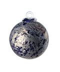 Boule décorative en verre soufflé, sublimée par un éclat argenté et bleu profond. Une pièce élégante et moderne qui apporte une touche raffinée à toutes vos décorations.