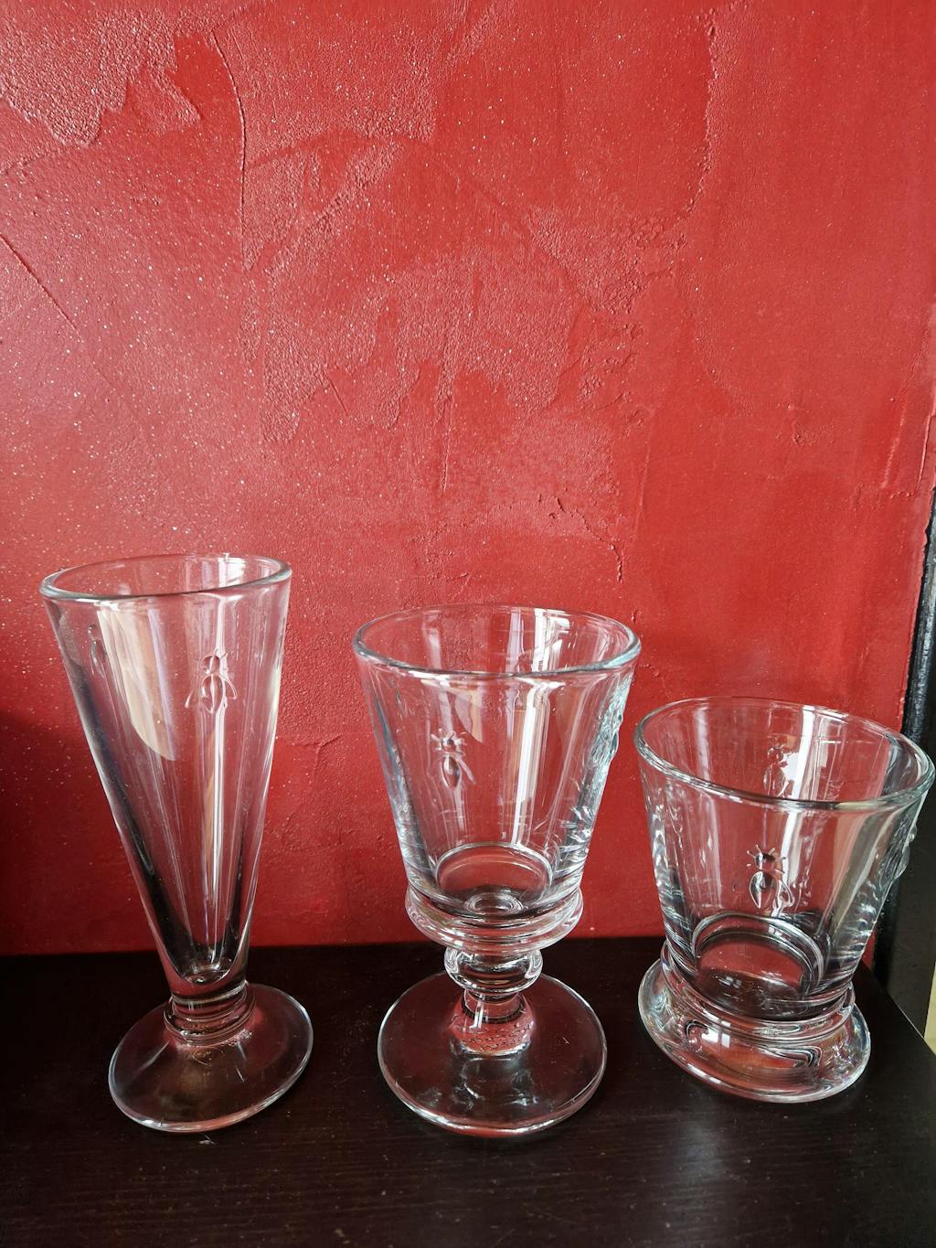 Concernant la collection "abeille", cela fait des années que nous la connaissons (1ère découverte dans un restaurant de la Cour Saint-Emilion, Paris 12) il y a plus de 20 ans. Les verres nous avaient tellement plu que nous les avons achetés à la Verrerie d'Art de Soisy sur l'Ecole. Depuis, nous continuons de les utiliser chaque jour.
