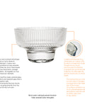Coupelle en verre au design texturé et raffiné, dotée de fines cannelures verticales qui captent élégamment la lumière. Idéale pour servir desserts, fruits, cocktails ou amuse-bouche avec une touche chic et sophistiquée.