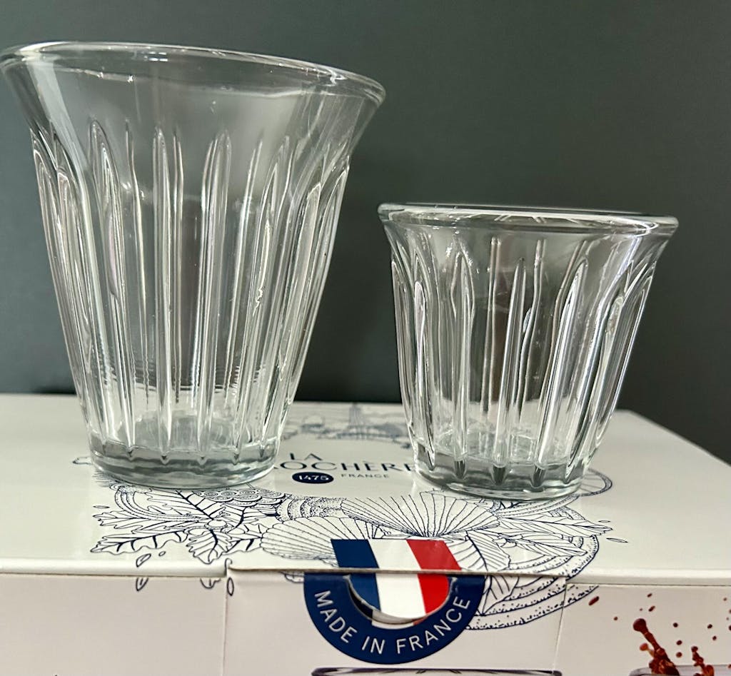 Ces verres à café sont très jolis et bien adaptés pour le café chaud. Les côtes en relief évitent de se brûler. Je viens de compléter ma série car, malheureusement, le verre de certains avait un peu blanchi au lave-vaisselle.